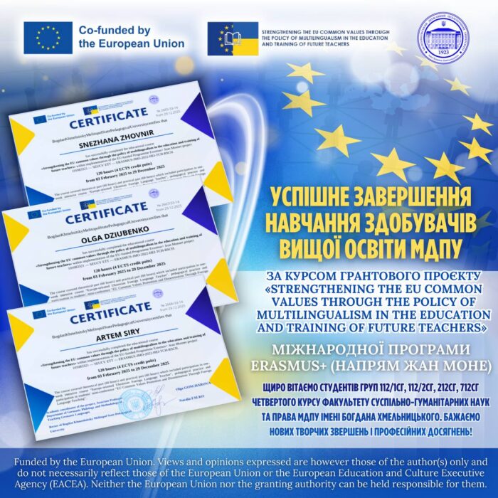УСПІШНЕ ЗАВЕРШЕННЯ КУРСУ ERASMUS+ (JEAN MONNET)