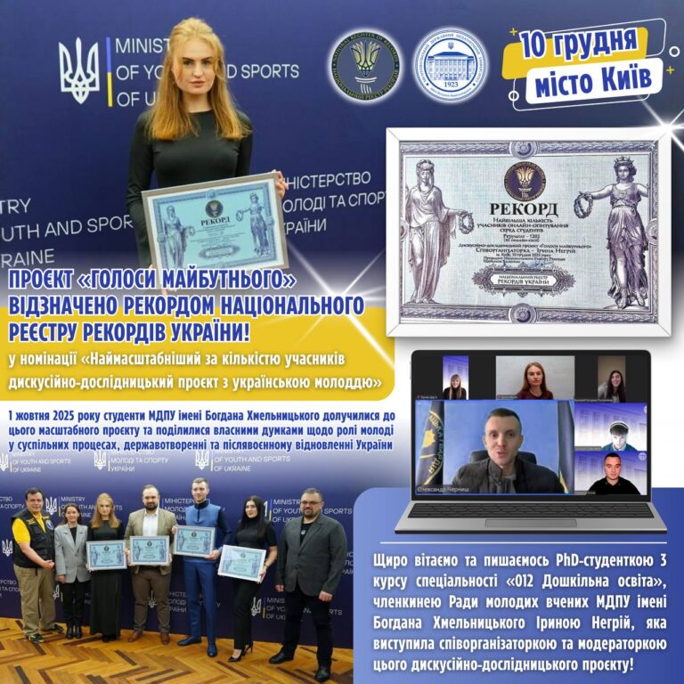 🎓⭐️PhD-студентка 3 курсу спеціальності «012 Дошкільна освіта», членкиня Ради молодих вченихМДПУ імені Богдана Хмельницького Ірина Негрійу період вересень–грудень 2025 року…